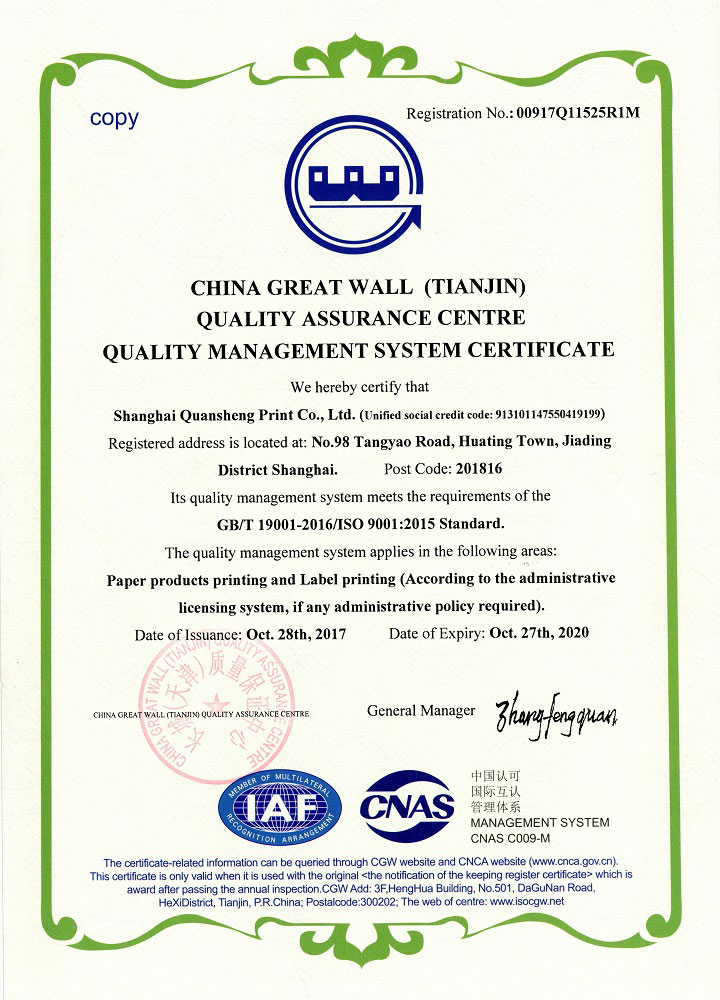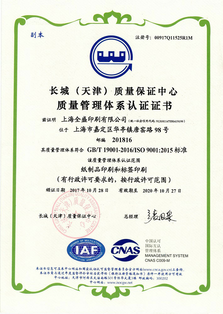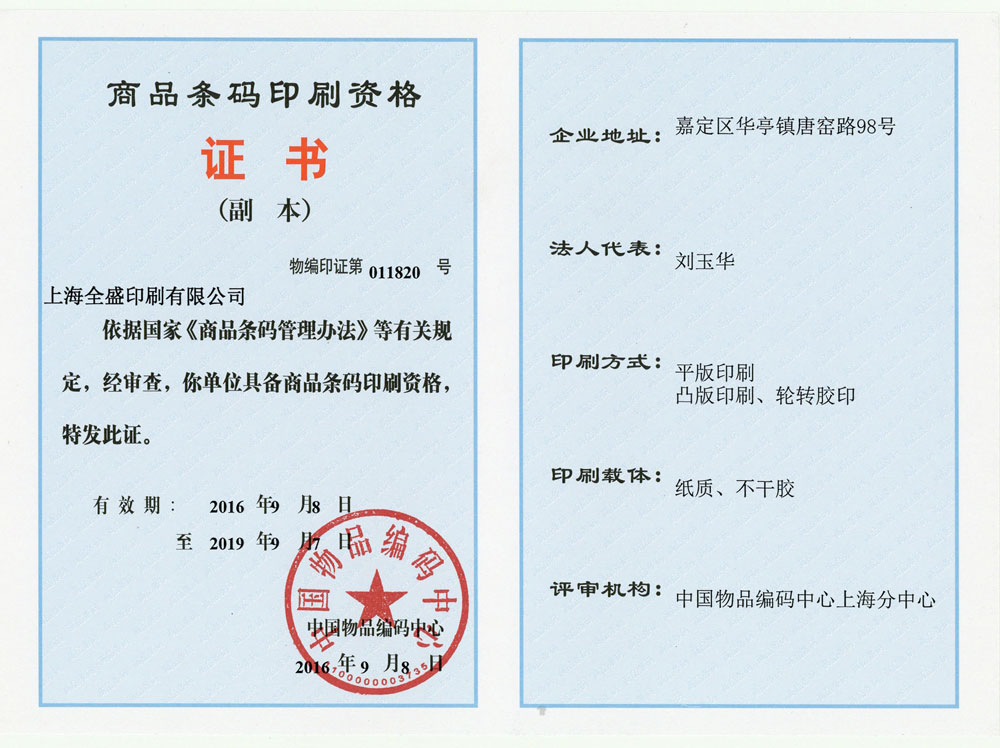 商品条码印刷资格证书