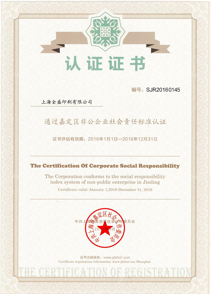 嘉定区非公企业社会责任标准认证